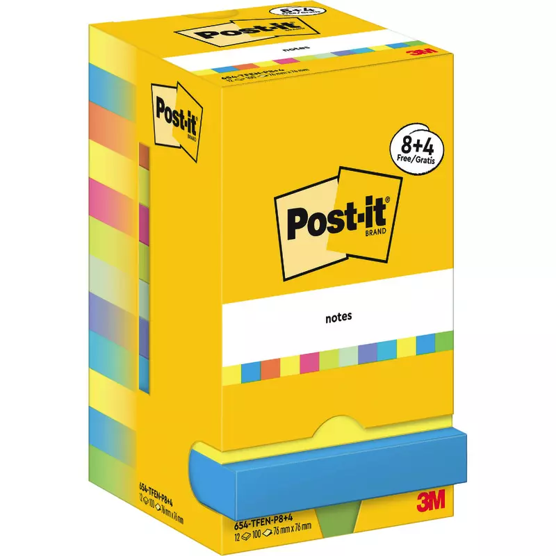 Produktinformationen "Post-it® Notes, Energetic Collection, 76 mm x 76 mm, 100 Blatt/Block, 8 Blöcke + 4 Gratis/Packung"