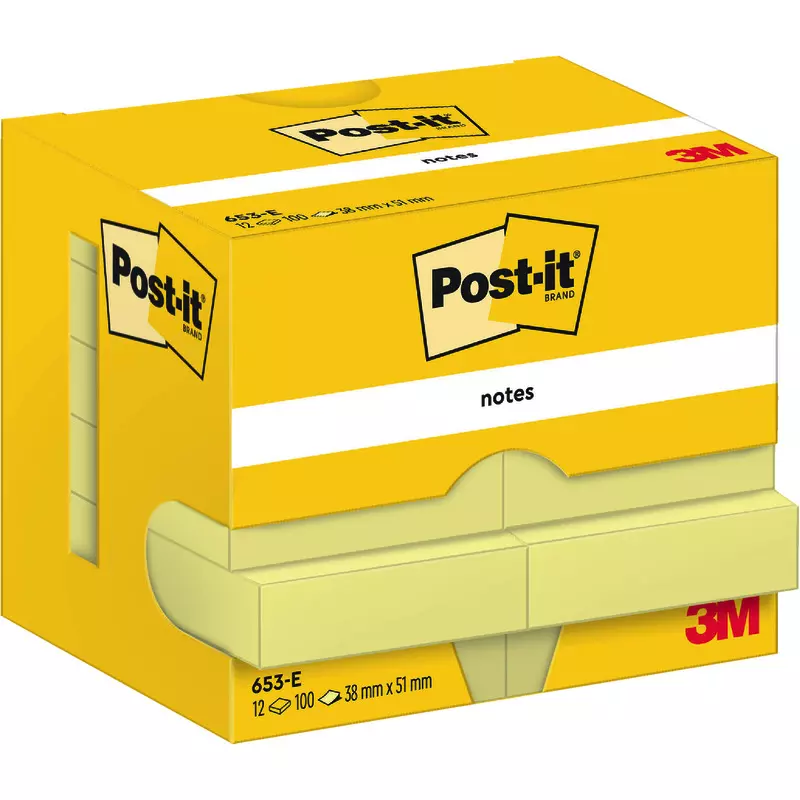 Produktinformationen "Post-it® Notes, Gelb, 38 mm x 51 mm, 100 Blatt/Block, 12 Blöcke/Packung"