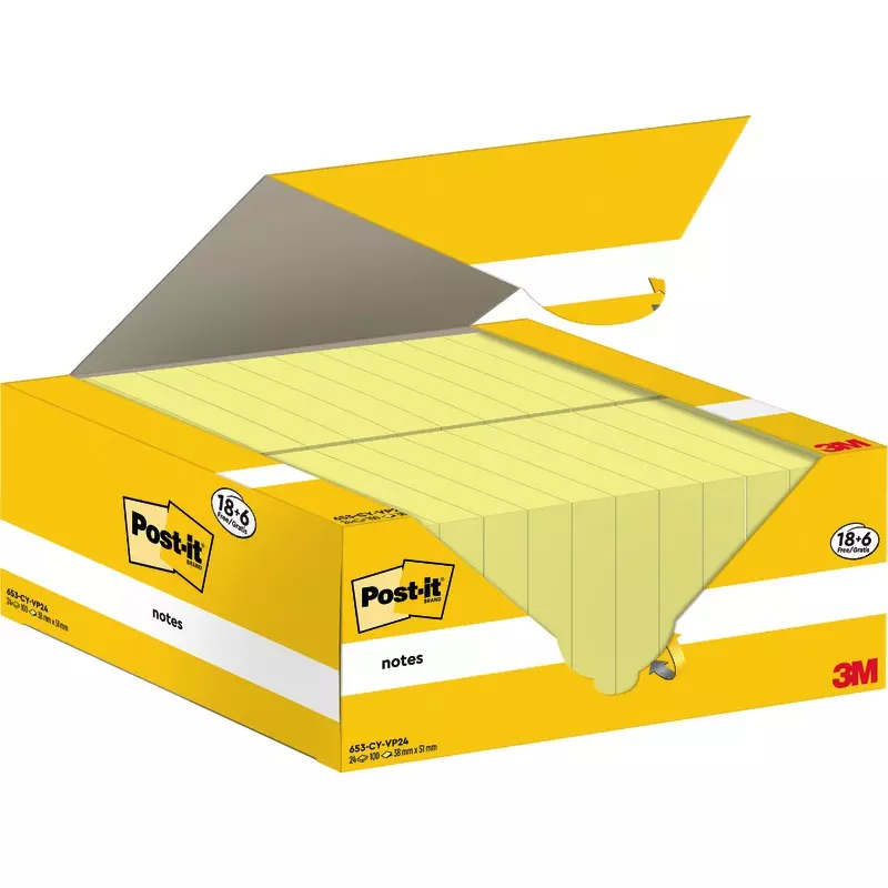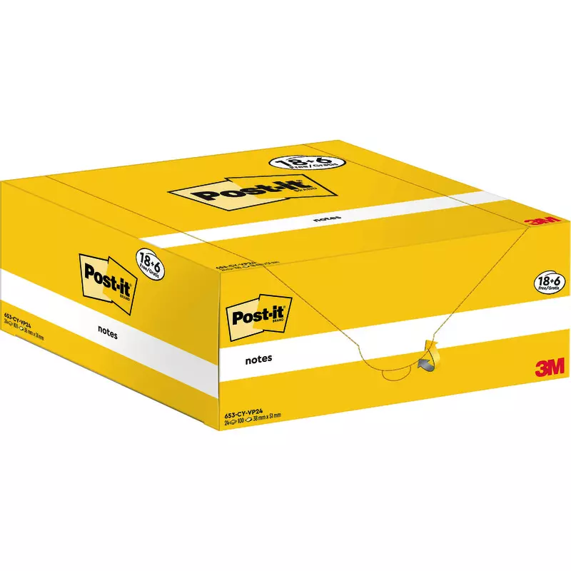 Produktinformationen "Post-it® Notes, Gelb, 38 mm x 51 mm, 100 Blatt/Block, 18 Blöcke + 6 Gratis/Packung"