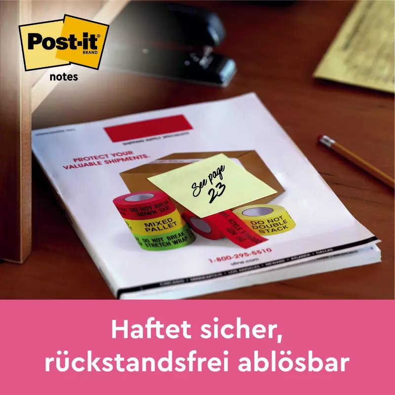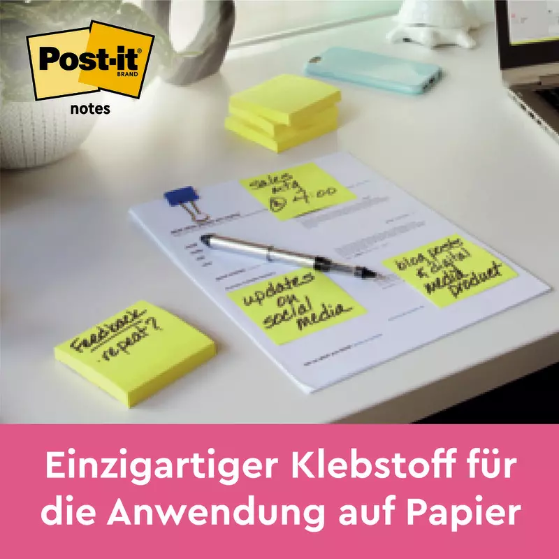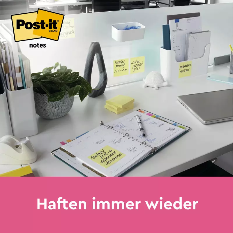 Die gelben Post-it® Notes sind optimal für Notizen, die Organisation deiner Unterlagen oder tägliche Mitteilungen und Erinnerungen geeignet.