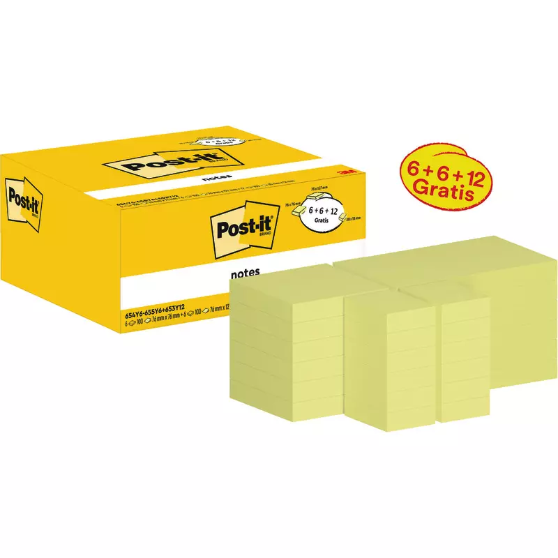 Produktinformationen "Post-it® Notes, Gelb, Verschiedene Größen, Promotion, 100 Blatt/Block, 12 Blöcke + 12 Gratis/Packung"