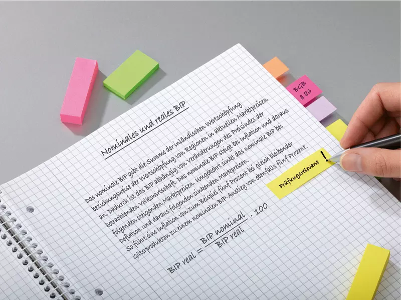 - Mit den Post-it® Page Markern lassen sich wichtige Informationen einfach markieren oder farblich kennzeichnen