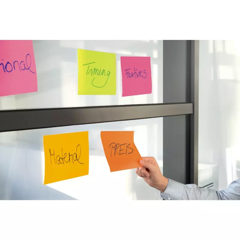 Diese extragroßen, farbigen Haftnotizen haften auf vertikalen und schwierigen Oberflächen. Sie eignen sich ideal für Notizen während Meetings, Vorträgen und Seminaren und zur Erstellung langer Listen. Sie sind extrastark haftend und vielseitig einsetzbar, sodass du deine Ideen darauf festhalten und die Notes überall im Raum platzieren kannst – ob bei einem besonders kreativen Brainstorming oder bei der Planung eines Meetings.