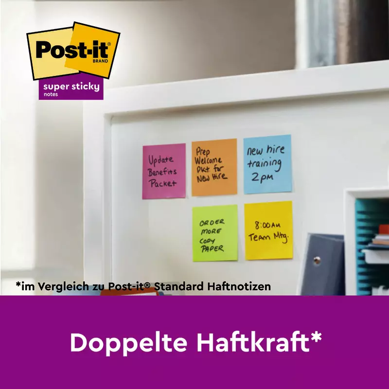 - Im Vergleich zu Post-it® Standard Notes haften sie doppelt so stark und halten länger