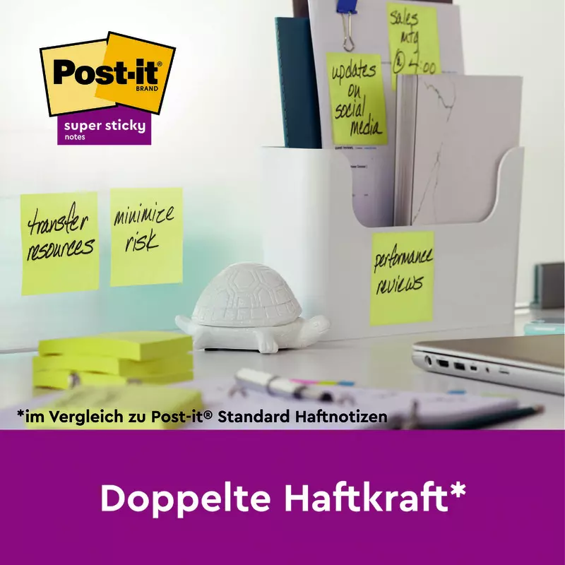- Im Vergleich zu Post-it® Standard Notes haften sie doppelt so stark und halten länger