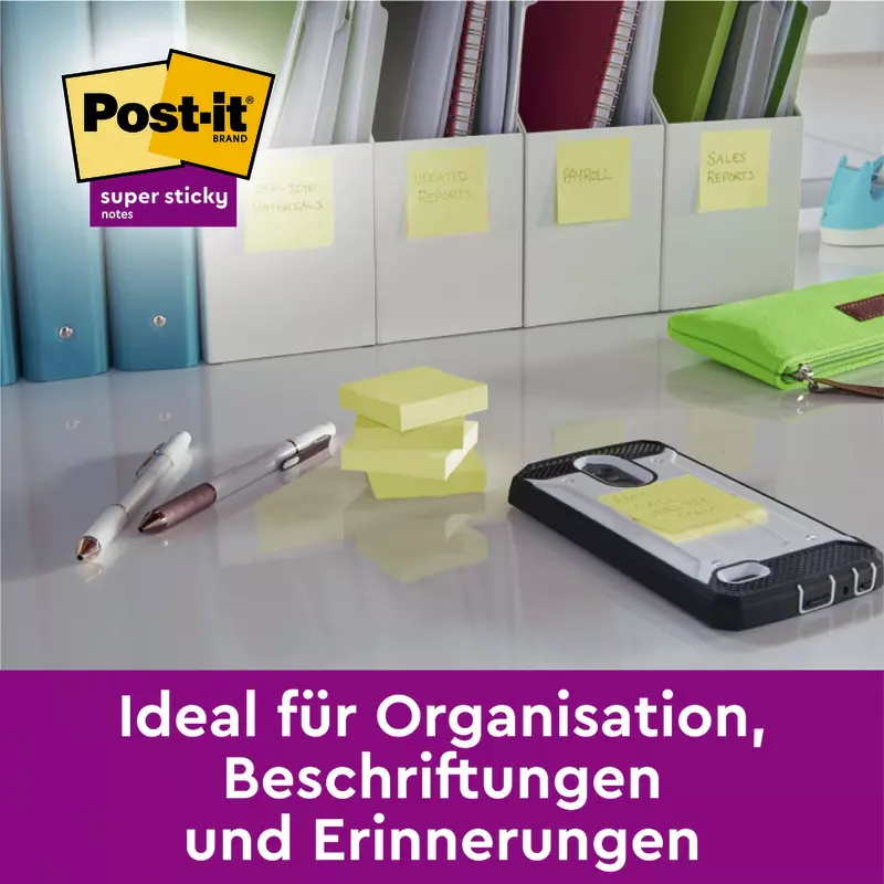 - Post-it® Super Sticky Notes werden aus PEFC-zertifizierten Papierfasern hergestellt, die aus nachhaltiger Forstwirtschaft und kontrollierten Quellen stammen (PEFC 15-31-0134)