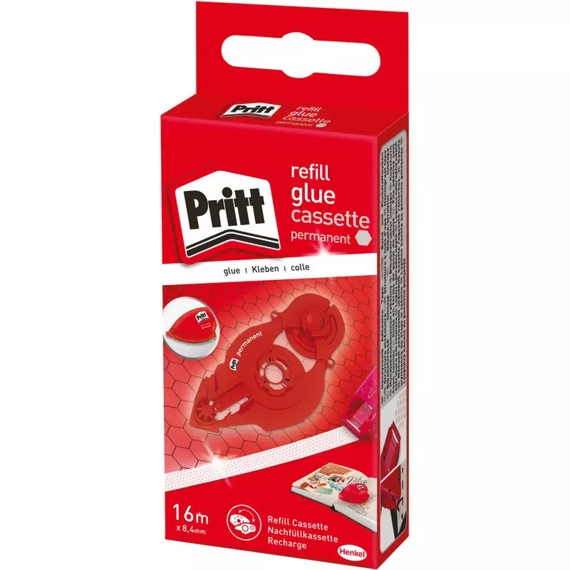 Nachfüllkassette für Pritt Kleberoller WA150. Starke Klebekraft dank des Premium-Klebstoffbandes, mit Klebstoffwaben für dauerhafte Verklebungen von Papier, Karton, Fotos, Glas und vielen anderen Materialen.