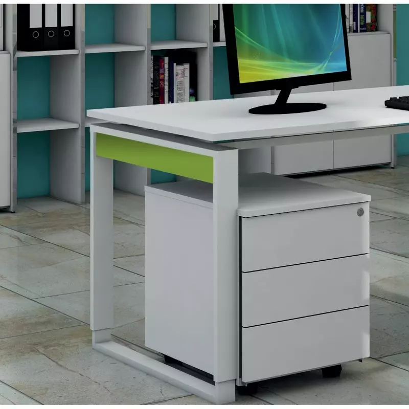 Mit seinen einzeln stellbaren Schreibtischen und den zur Erweiterung angebotenen Ansatztischen, lassen sich vielfältige Arbeitsplatzgestaltungen realisieren. Die Schiebtürenschänke erlauben zudem eine abwechslungsreiche und funktionale Büroraumgestaltung. Mit den Wendeschiebtüren bringen sie auch gleich frische Farbakzente mit, die sich auch an den Tischgestellen wiederfinden lassen können, ganz nach Ihrer Wahl.