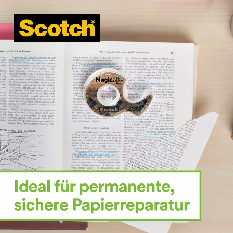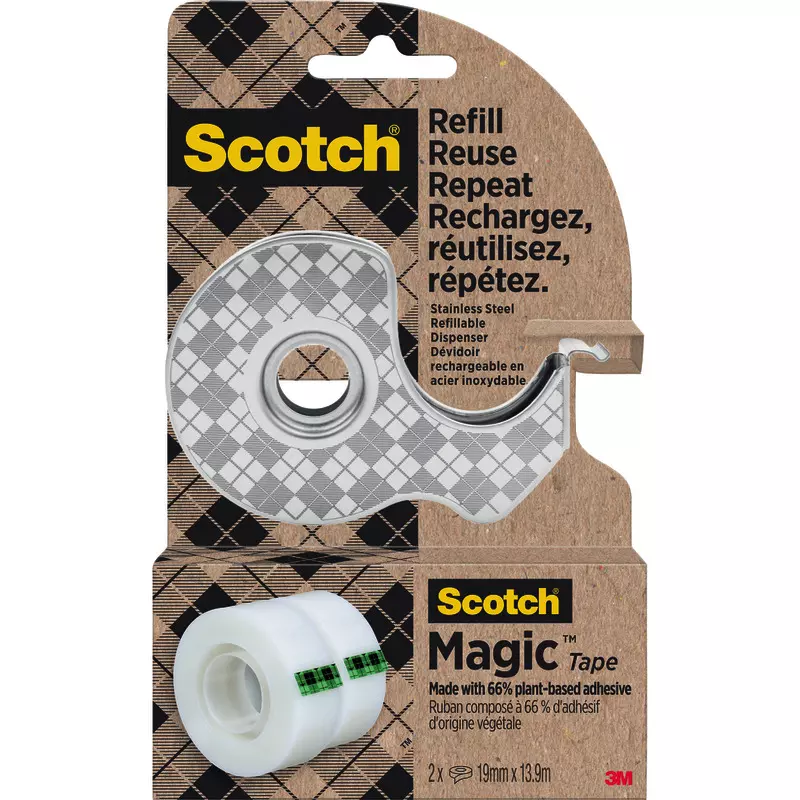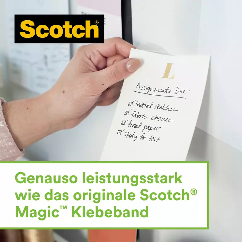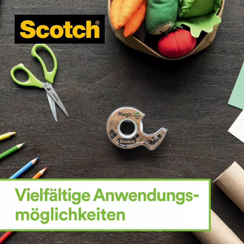 - DURCHSICHTIGES KLEBEBAND: Scotch® Magic™ Klebeband, hergestellt mit 66 % pflanzenbasiertem Klebstoff bleibt unsichtbar, wenn es auf die meisten Papiere aufgetragen wird, und bleibt beim Scannen oder Fotokopieren unsichtbar