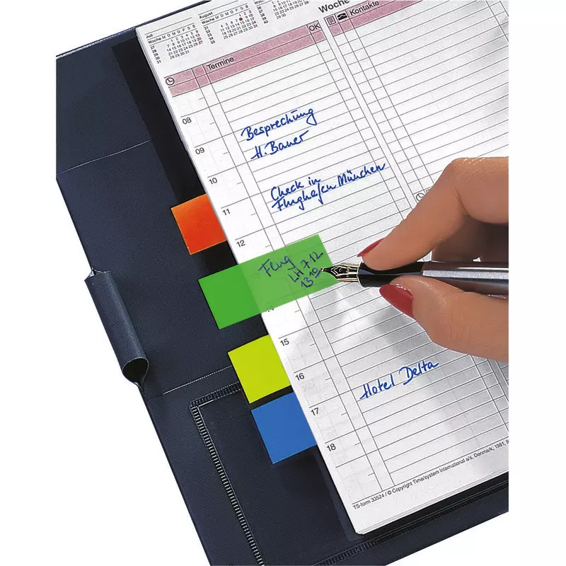 Reißfeste Haftmarker aus Folie in den Farben Orange, Blau, Gelb und Pink. Die transparenten Marker sind beschriftbar, rückstandsfrei wiederablösbar und umweltfreundlich durch lösemittelfreien Klebstoff. Im Lieferumfang sind 4x40 Blatt im Format 20x50 mm enthalten. Besonders praktisch zum umfangreichen Markieren, Strukturieren und Organisieren.