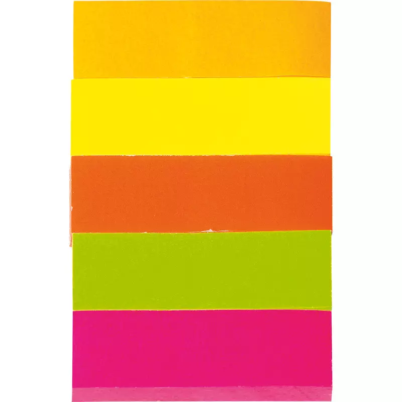 Haftmarker aus Papier in den Farben Neonorange, -gelb, -rot, -grün und -pink. Die Marker sind beschriftbar, rückstandsfrei wiederablösbar und umweltfreundlich durch lösemittelfreien Klebstoff. Besonders praktisch zum umfangreichen Markieren, Strukturieren und Organisieren.
