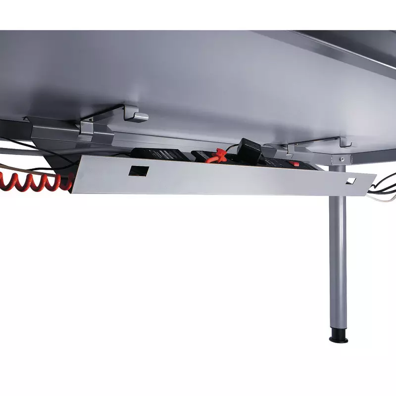 - Tischfüße aus Rundrohr 60 mm in Graualuminium. Bei benötigter Verkettung können Tischfüße zurückgesetzt werden.