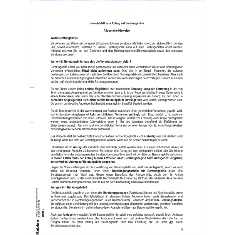 Antrag auf Beratungshilfe mit der Erklärung zu Einkommens- und Vermögensverhältnissen.