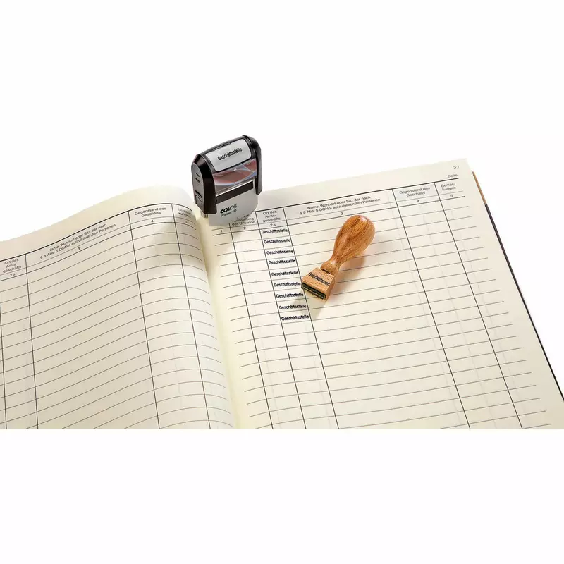 Den passenden Stempel „Geschäftsstelle“ (siehe Zubehör) gleich