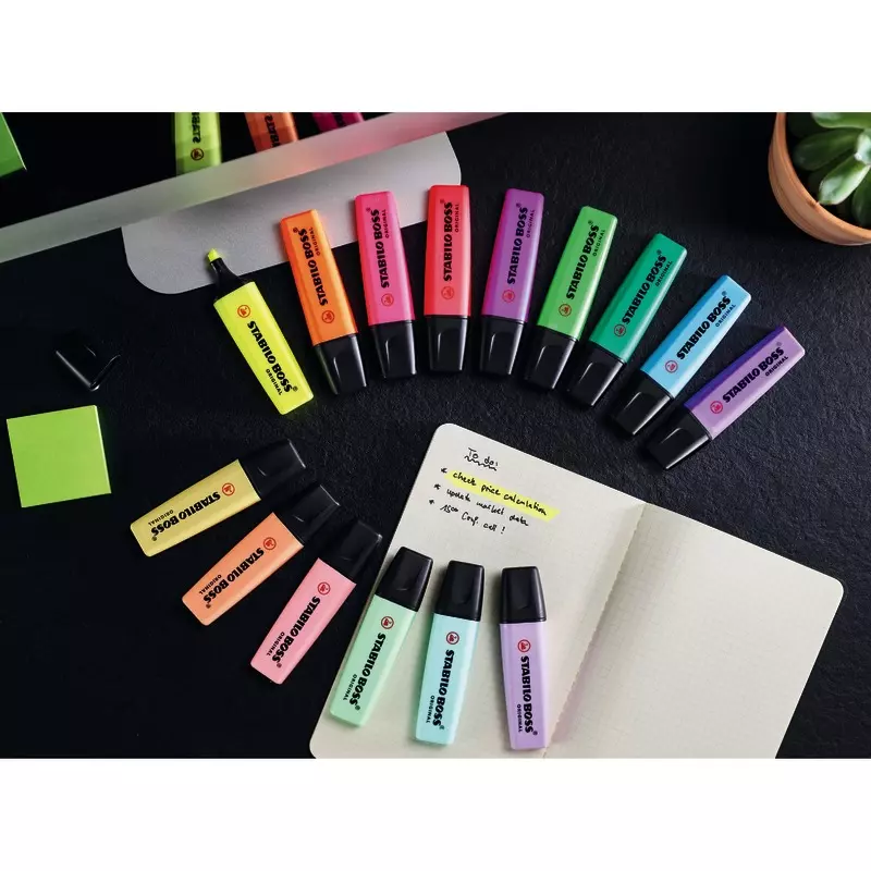 Die STABILO Anti-Dry-Out Technology sorgt für bis zu 4 Stunden für einen Austrockenschutz, damit wird ihnen ein konzentriertes Arbeiten ermöglicht. Einziger Textmarker in 9 attraktiven Leuchtfarben.