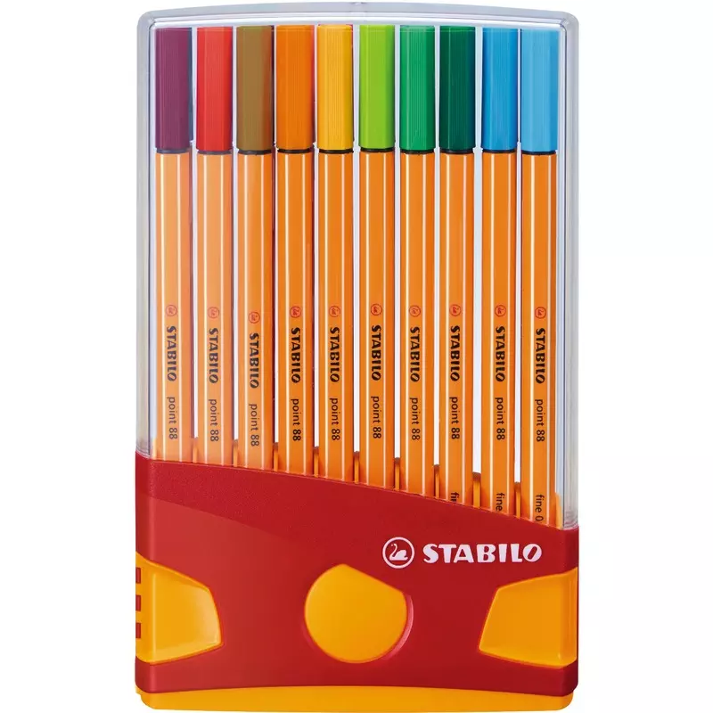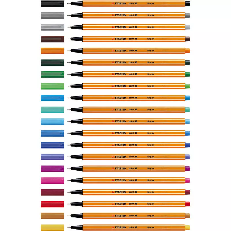 Der STABILO point 88 Fineliner ist mit seinem orangefarbenen Schaft mit den charakteristischen weißen Kanten ein Markenzeichen für Präzision und große Farbvielfalt und nicht umsonst die Nr 1 in Europa. Die in Metall eingefasste Spitze ist dabei schon unzählige Male der Ursprung großer Ideen und genialer Gedanken gewesen. Ob in Beruf, Studium, Schule, Alltag oder in kreativen Momenten, der STABILO point 88 ist Ihr perfekter Begleiter.