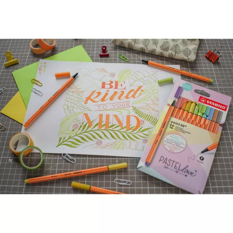 Der Fineliner STABILO point 88 im 12er Kartonetui Pastellove in lieblichen Pasteltönen für feines Schreiben, Zeichnen und Skizzieren.