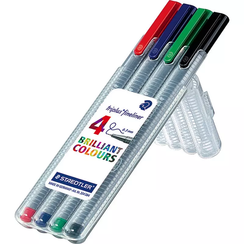 Die Feinschreiber in vier Farben garantieren dank ihrer feinen metallgefassten Spitze eine besonders lange Lebensdauer. Strichstärke: 0,3 mm.