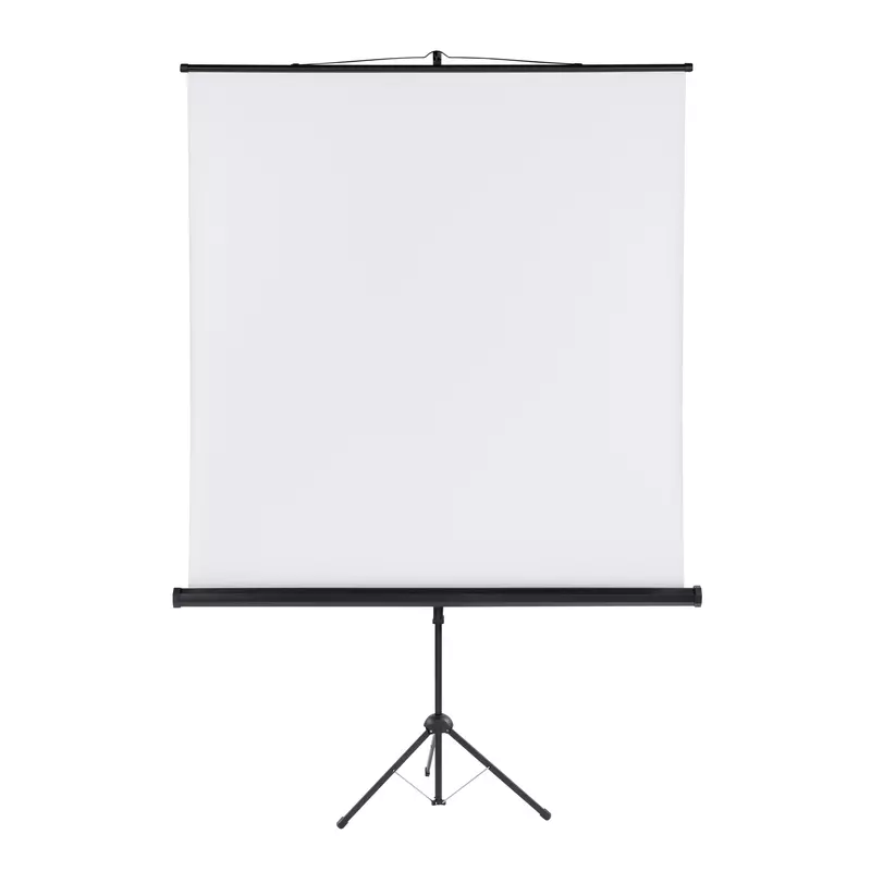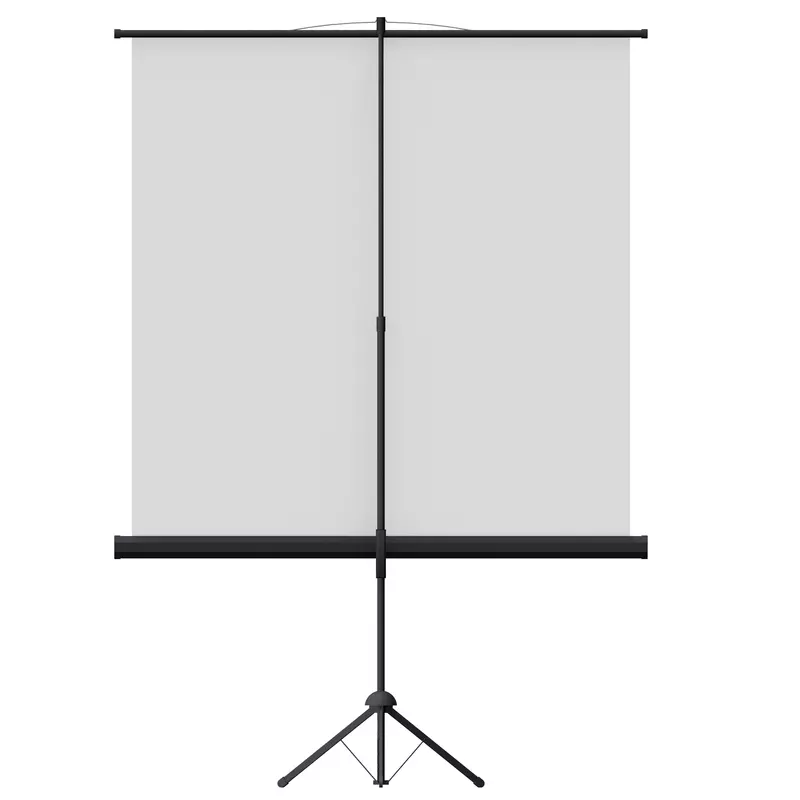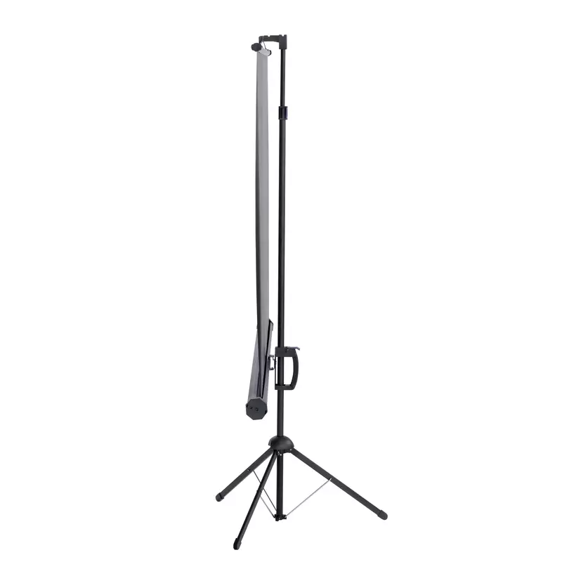 aufrollbarer Projektionsfläche · Schwarzes Dreibeinstativ mit