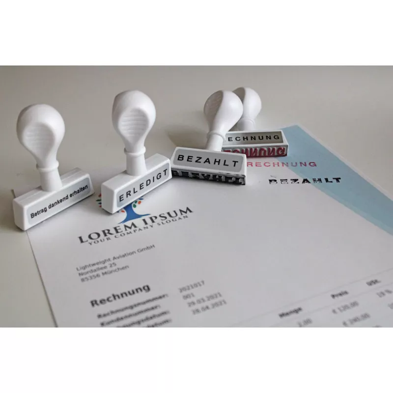 Textstempel ERLEDIGT · Stempelfarbe: individuell · Stempeltext