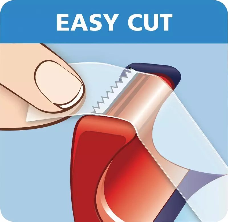 Präziser Schnitt und hohe Funktionsleistung! Der nachfüllbare tesa Easy Cut® Handabroller in ergonomischem Design für präzisen Schnitt und hohe Funktionsleistung. Das Wellenmesser ermöglicht saubere Schnitte.