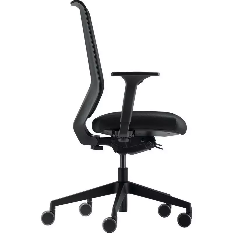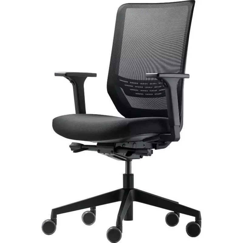 Perfektes Paket aus Design und Leistung. Für maximale Bequemlichkeit stehen: komfortabel einstellbare Synchronmechanik, harmonisch abgestimmter Bewegungsablauf, verstellbare Sitztiefe und Armlehnen, ergonomische Rückenlehne und Lumbalstütze in Schwarz.