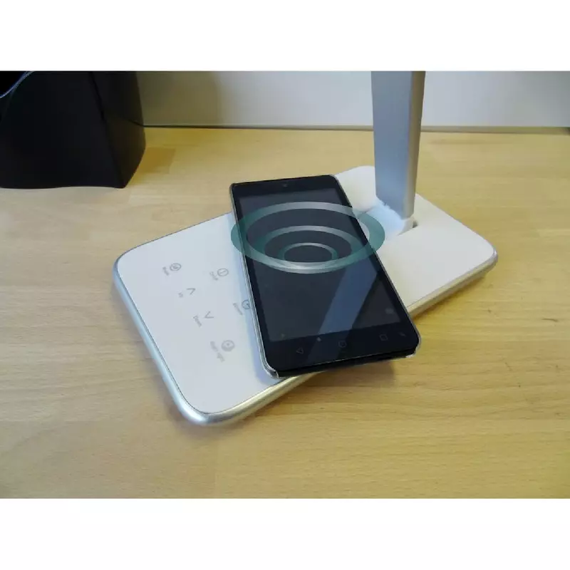 Elegantes Design mit dünnen und klaren Linien. Mit Wireless Ladegerät und USB-Anschluss zum kabellosen Aufladen von Smartphones mit kabelloser Ladeoption.
