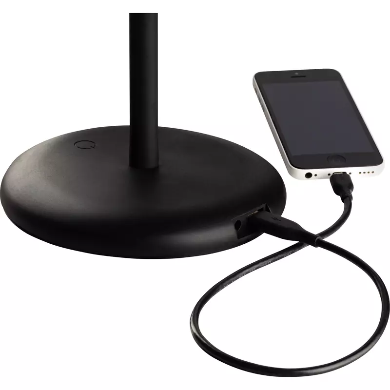 Schreibtisch aufzuladen. Der ellipsenförmige Leuchtenkopf sorgt für