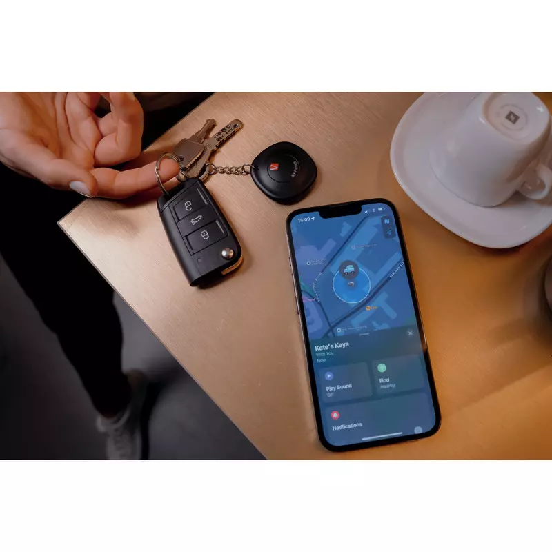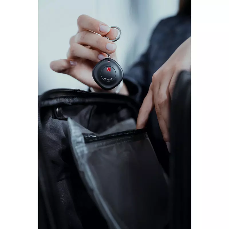 Bei My Finder von Verbatim handelt es sich um einen Tracker, der ausschließlich mit der App „Wo ist?“ von Apple funktioniert. Verlorengegangene Schlüssel, Taschen und andere wichtige Gegenstände gehören der Vergangenheit an – dank der My Finder Bluetooth-Tracker von Verbatim. Einfach den vielseitig einsetzbaren Anhänger an dem Gegenstand anbringen, der nachverfolgt werden soll, und mit der Apple App „Wo ist?“ orten, wenn er verloren gegangen ist.Durch den Einsatz des „Wo ist?“-Ökosystems von Apple ist das einfache und unkomplizierte Nachverfolgen des Objekts möglich. Wenn Sie sich in der Nähe des Objekts befinden, wählen Sie in der App „Ton abspielen“ und finden Sie es, indem Sie dem Ton folgen. Sie können stattdessen das verloren gegangene Objekt auch über die App suchen und den Standort auf einer Karte angezeigt bekommen. Zum Schutz Ihrer Privatsphäre erfolgt die Suche verschlüsselt und anonym.Dank der Lithiumbatterie brauchen Sie sich mindestens 12 Monate keine Gedanken über die Batterielaufzeit zu machen: Die Batterie muss nicht ständig ausgetauscht werden. Ausgerüstet mit einem Schutz gemäß IP66 ist My Finder wasser- und staubfest.