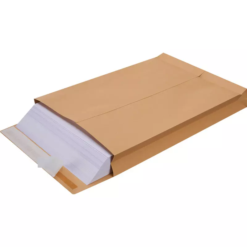 Versandtasche DIN C4 mit Seitenfalte und 40 mm Stehboden, mit Fenster, braun, Pack: 100 Stück