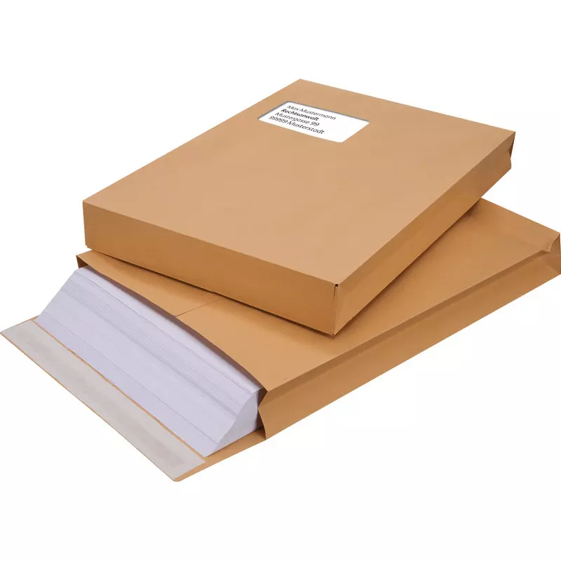Produktinformationen "Versandtasche DIN C4 mit Seitenfalte und 40 mm Stehboden, mit Fenster, braun, Pack: 100 Stück"