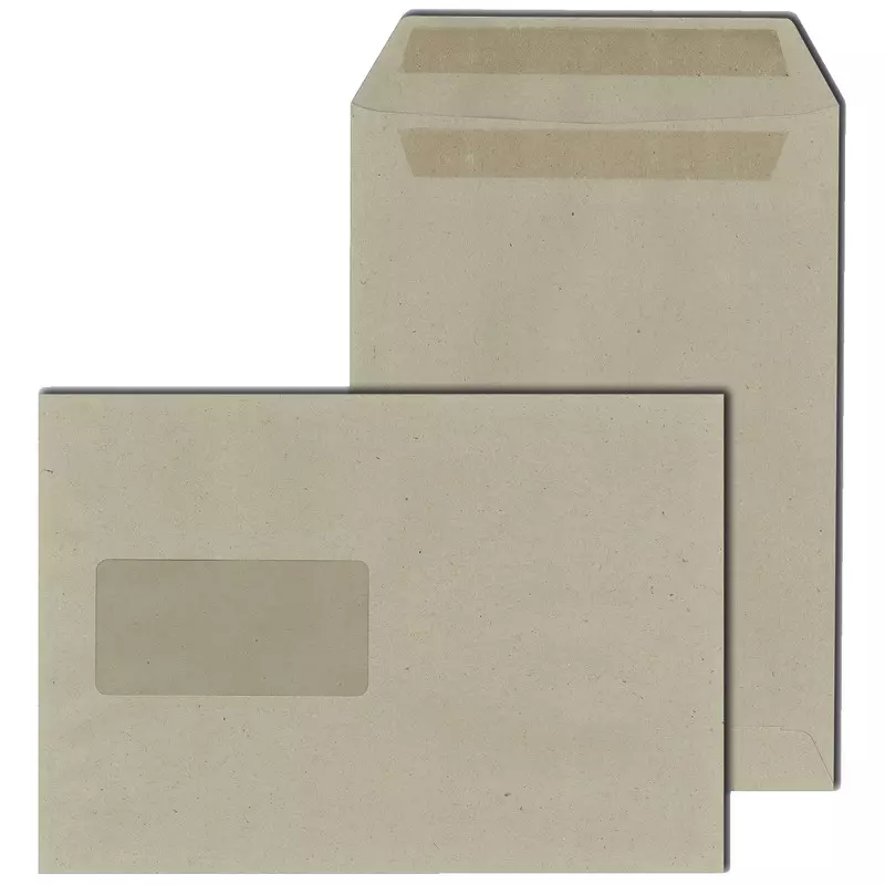 Versandtaschen DIN C5, 162 x 229 mm, Recycling, selbstklebend, grau, 80 g/m², mit Fenster 45 x 90 mm, Pack: 500 Stück