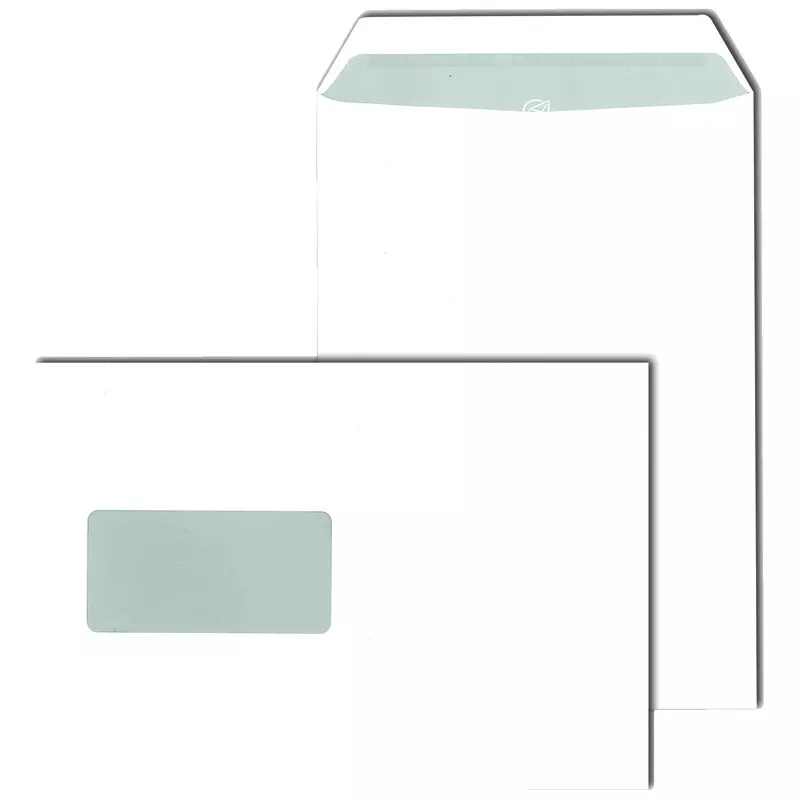 Versandtaschen DIN C5, 162 x 229 mm, selbstklebend, weiß, 90 g/m²,mit Fenster 45 x 90 mm, grauer Innendruck, Pack: 500 Stück