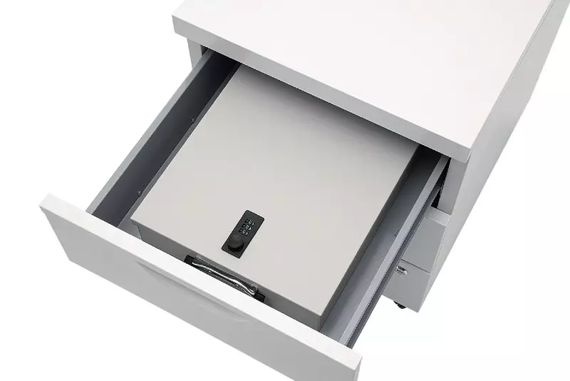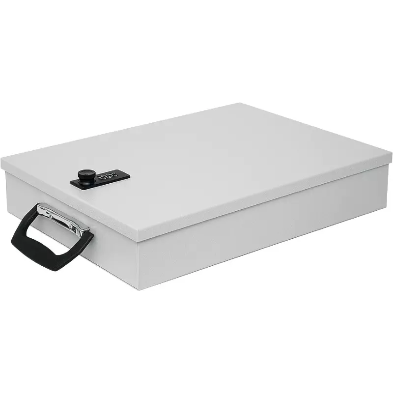 Kassette mit Zahlenschloss und Koffergriff zur Aufbewahrung wichtiger Unterlagen und Verträge.