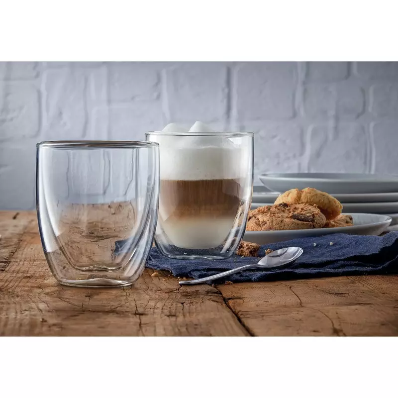 Außerdem verhindert der Isolier-Effekt ein Verbrennen der Finger, denn das doppelwandige Cappuccinoglas wird durch das Vakkum von außen nur warm. Aber auch kleine Portionen anderer Heißgetränke, kalter Desserts und vieles weitere mehr kommt darin optisch toll zur Geltung.