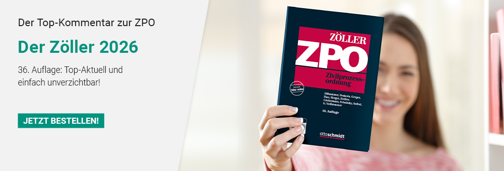 Nutzen Sie die Vorteile und die Rechtssicherheit, die Ihnen der ZPO-Kommentar von Zöller bietet und sichern Sie sich die Neuauflage 2026 - jetzt inklusive Datenbank-Zugang zu Zöller online!